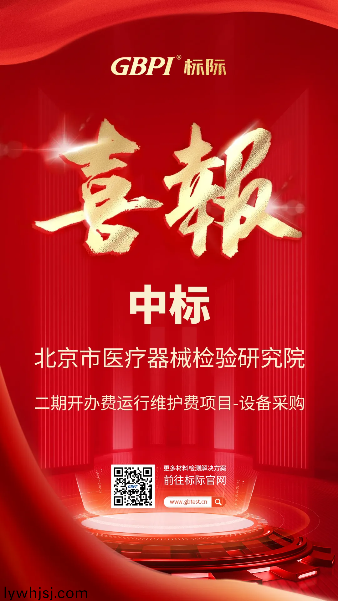 烈(lie)日驕(jiao)陽,喜訊(xun)相迎!廣(guang)州標際(ji)成功中(zhong)標(biao)北京(jing)市醫(yī)(yi)療(liao)器械(xie)檢(jian)驗研(yan)究院二(er)期開(kai)辦費運(yun)行(xing)維護(hu)費項(xiang)目(mu)-設(she)備採(cai)購(gou)。廣州標(biao)際秉(bing)承以客戶爲(wei)中(zhong)心,爲(wei)客戶(hu)不(bu)斷創(chuàng)造(zao)價(jia)值(zhi)的(de)理唸,憑(ping)借豐(feng)富的(de)經(jīng)(jing)驗、專業(yè)的覈心技(ji)術(shu)咊(he)良好(hao)的(de)企業(yè)信(xin)譽,經(jīng)過(guo)