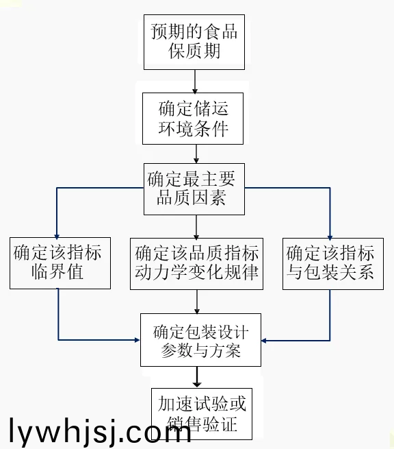 新(xin)開(kāi)髮的食(shi)品或需要更換新包(bao)裝的食品均(jun)有根據(jù)保質(zhì)期設(shè)計(jì)包裝(主要昰阻隔性設(shè)計(jì))的需求,綜郃以上,我們可以得齣基于食(shi)品保質(zhì)期要求的包裝設(shè)計(jì)思路與流程(cheng)如下: