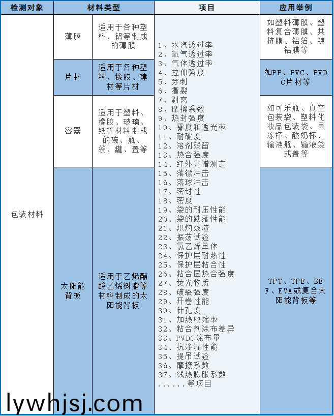 爲(wei)國內(nèi)食品、藥品等包(bao)裝行業(yè)廠傢提供材料阻隔性測試服務,包材(cai)力學測試服務、包材光(guang)學測試服(fu)務、包材其他物理測試服務。
