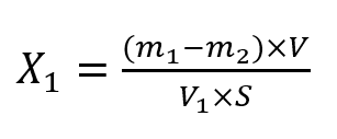 V1—測(cè)定用浸泡液體積,單位爲(wèi)毫陞(mL);